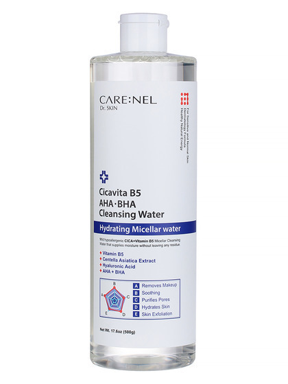 CARENEL Вода для лица очищающая с экстрактом центеллы азиатской, В5, AHA и BHA-кислотами