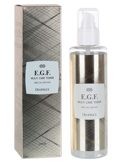 Тонер для ухода за лицом EGF Multi Care Toner, который усиливает естественную силу кожи ингредиентами EGF, чтобы увлажнить и освежить. Тонер на основе EGF отбеливает и уменьшает морщины, экстракт центеллы азиатской, экстракт цветков матрикарии и экстракт листьев камелии китайской, успокаивают раздраженную кожу и обеспечивают увлажняющий эффект. Осветляющий ингредиент Ниацинамид и ингредиент для разглаживания морщин аденозин делают кожу яркой и эластичной.