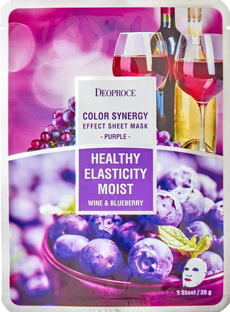 DEOPROCE Маска для лица тканевая с экстрактом черники и красного винограда, 20г