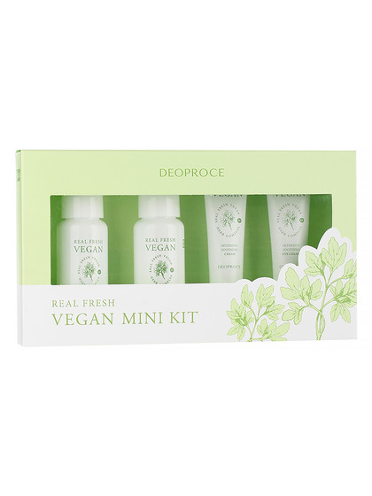 DEOPROCE Средства для лица с растительным комплексом / Real Fresh Vegan Mini Kit, набор 30мл/30мл/10мл/10мл